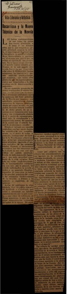 Bacarisse y la nueva técnica de la Novela. Dotor, Ángel . El Noticioso, Vida Literaria y Artística . Guanajuato (México);